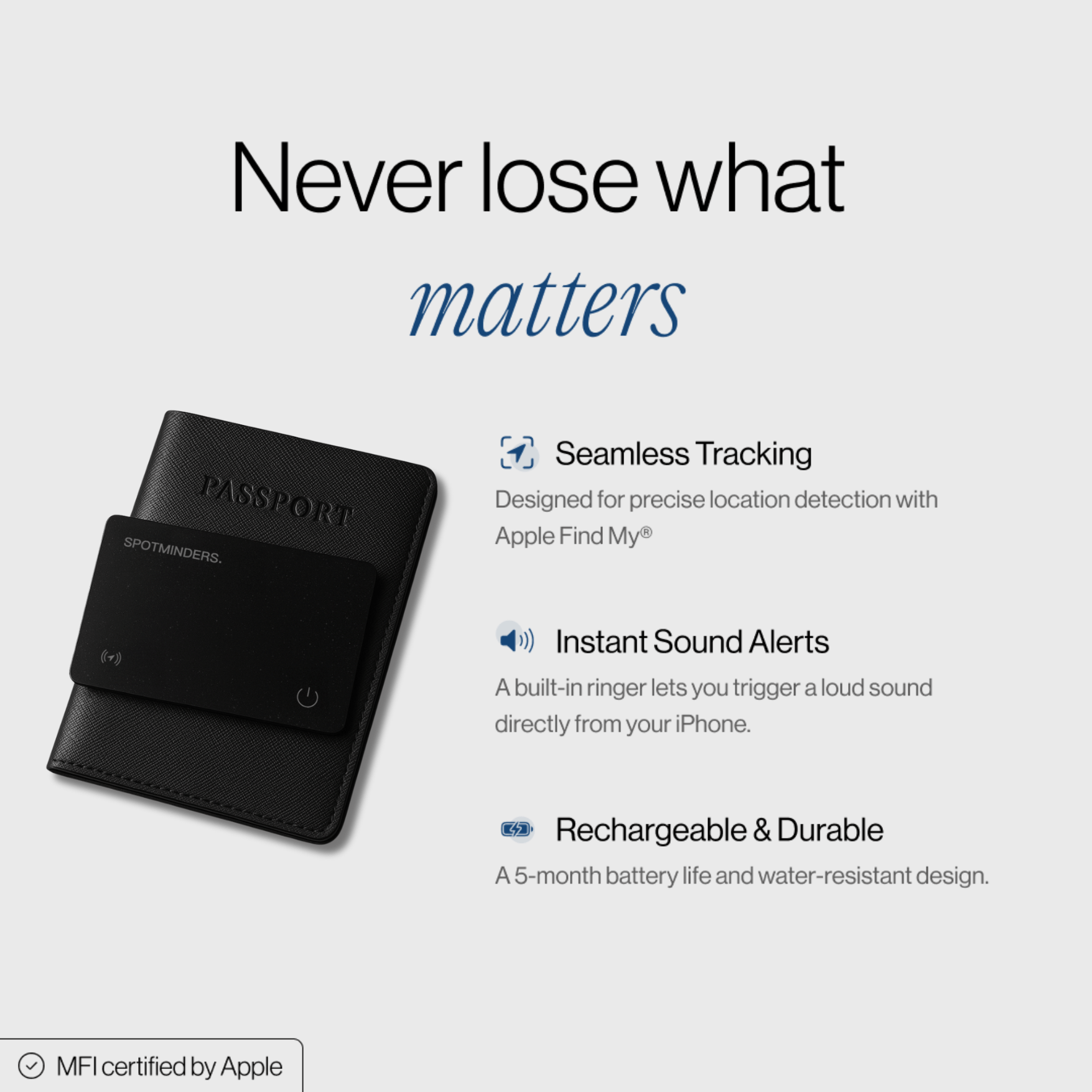 Ultra-thin smart card that fits in any wallet, offering precise tracking through Apple Find My.